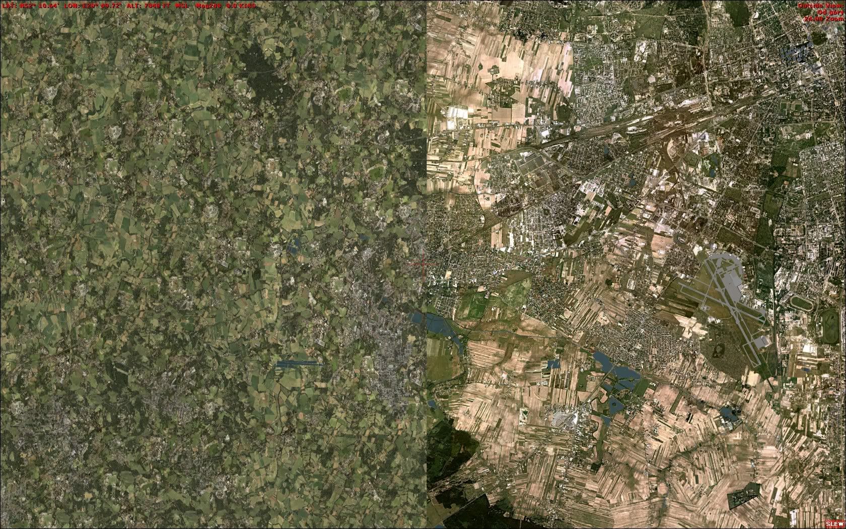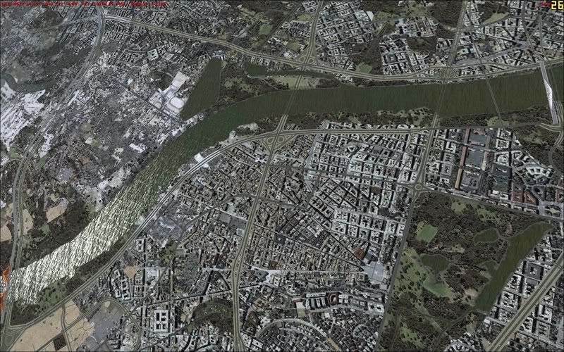 Osobiście chciałbym poruszyć temat landclassu, bo to ciekawe zagadnienie w UTX. Aby uzyskać najlepszy efekt, trzeba dodać do całości produkt Cloud9 i ustawić go w hierarchii nad landclassem UTX-Urban/Vegetation, ale pod UTX-Roads, itd. Co nam to da? Ano, uzyskamy o niebo lepszy landclass Europy, wliczając w to lasy, a będziemy mieli dodatkowo widoczny wektorowy landclass z UTX. Ten ostatni przedstawia parki, pola golfowe i ośrodki wypoczynkowe. Bardzo dobrze widać to na przykładzie Warszawy, gdzie mamy wyraźnie zaznaczone Pola Mokotowskie, Park Saski, park z Uniwersytetem, cmentarze, okolice portu praskiego. Widać też obszary fabryczne, m.in. w okolicach Dworca Zachodniego. Skoro jesteśmy przy liniach kolejowych, to dla twórców należy się kolejny plus z ich wykonanie.