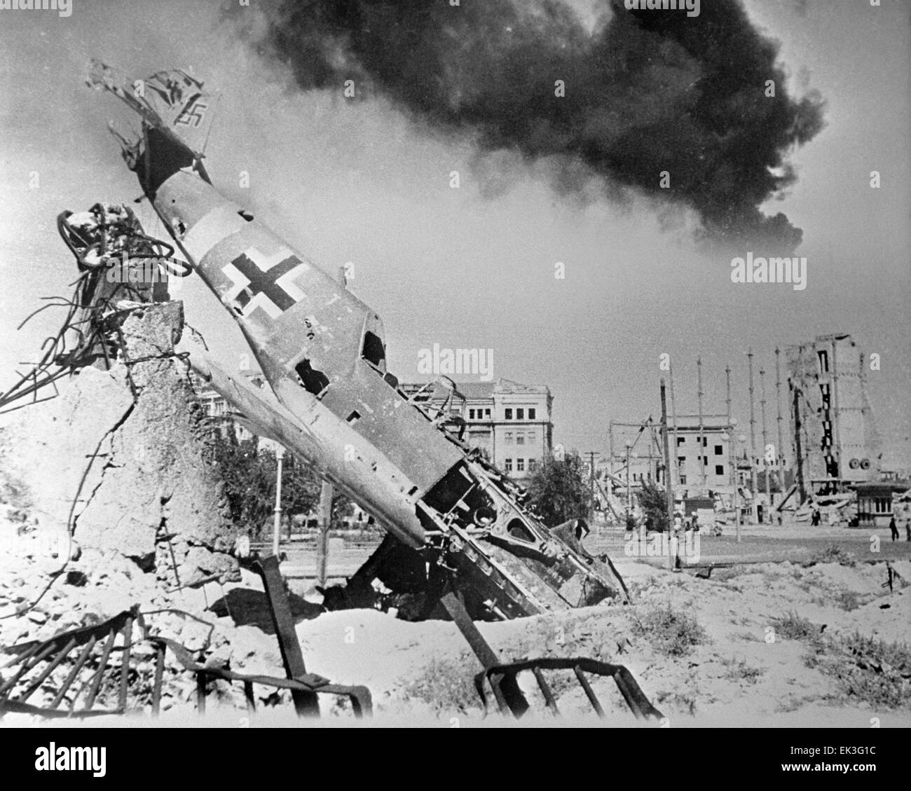 Zdjęcie z Onetu podpisane: Zniszczony niemiecki myśliwiec w bitwie pod Stalingradem w 1943 roku.
