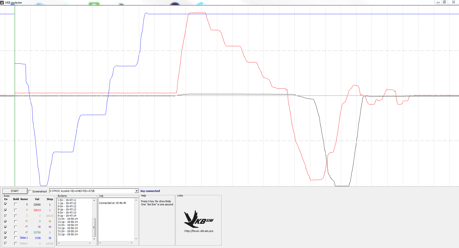 Przecież jest wykres. Poruszane są osie przepustnicy i X-Y (odpowiednio - niebieska, czarna, czerwona).