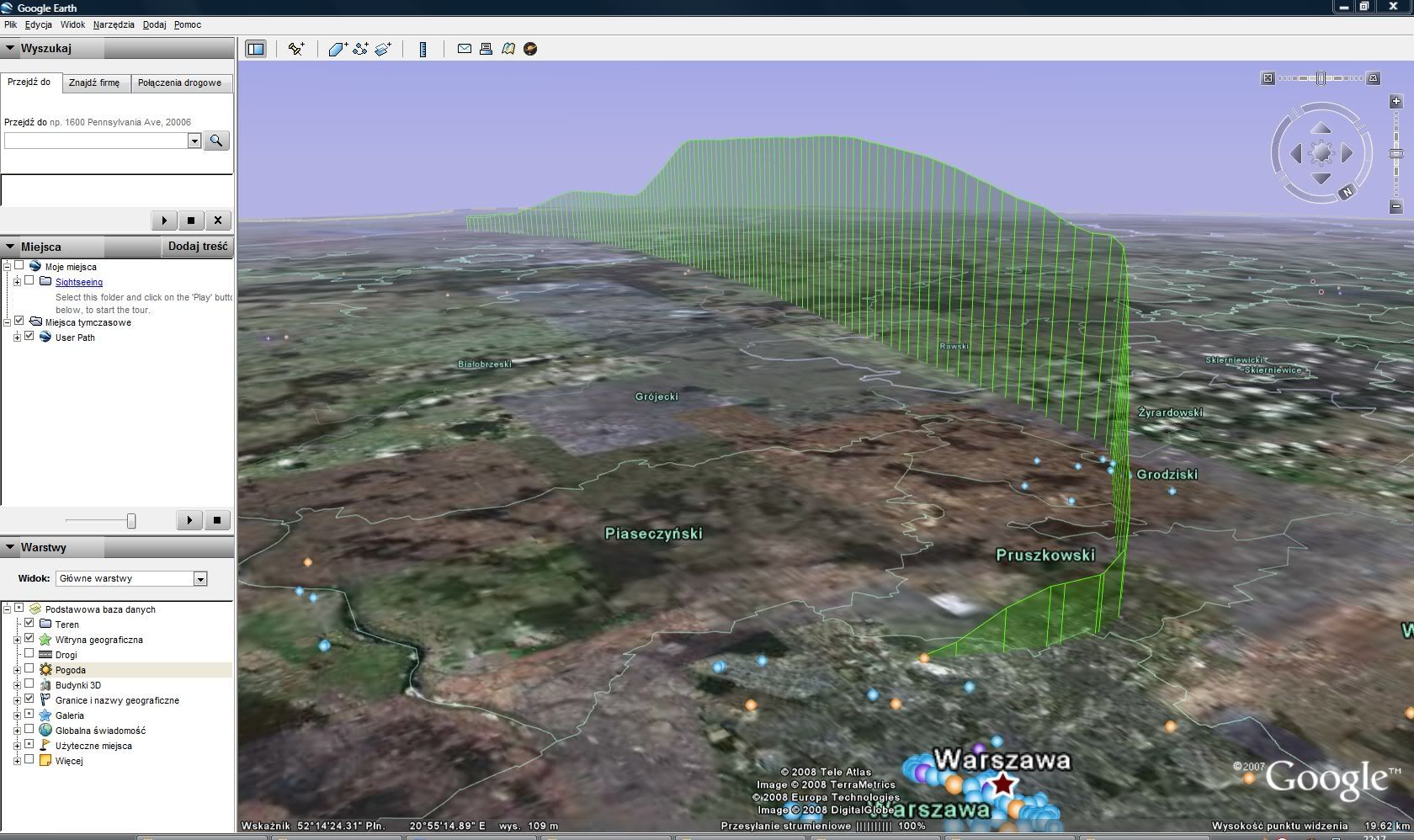 - podgląd na bieżąco naszej pozycji w Google Earth.