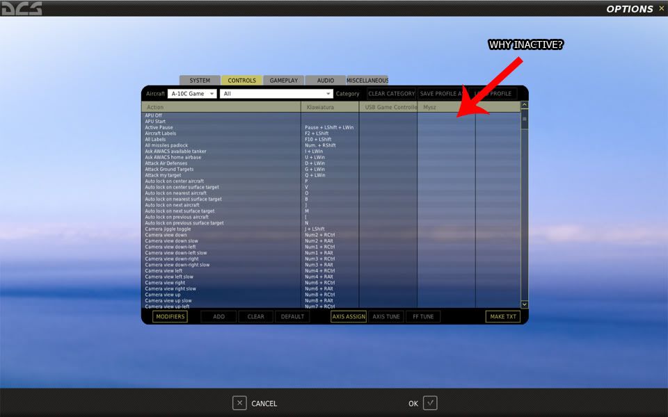 No właśnie też to zauważyłem. W Ka-50 można klawisze myszy ustawić bez problemu, nie wiem czemu w A-10 z tego zrezygnowali. Postaram się coś wykombinować bo też mi się to przyda