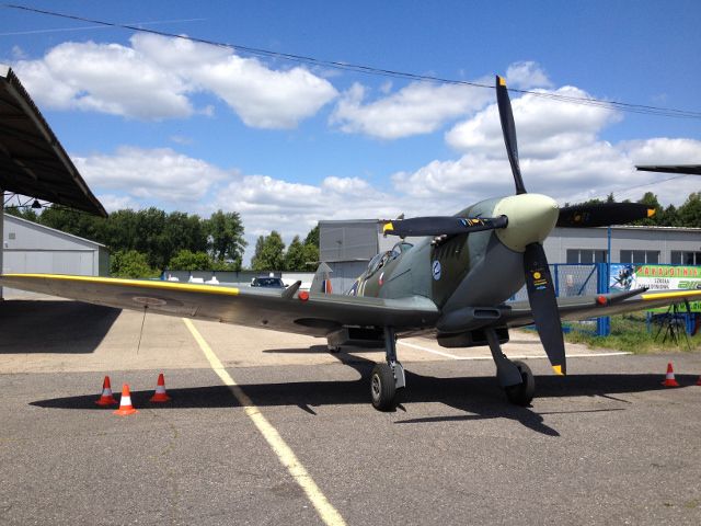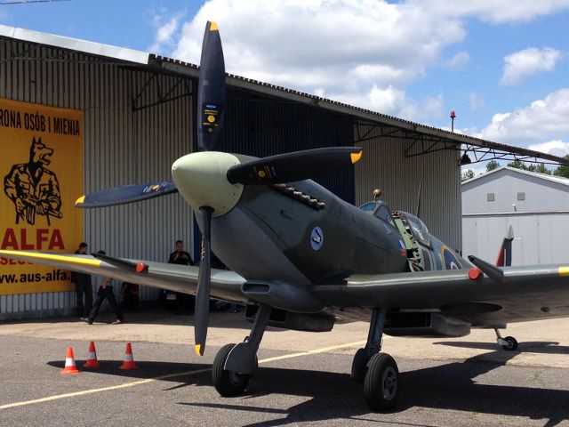Dzisiaj około godziny 12 wylądował na lotnisku w Rudnikach koło Częstochowy Spifire pilotowany przez Jacka Mainka. Ponoć było to pierwsze w historii lądowanie na terenie Polski myśliwca Spitfire w wykonaniu polskiego pilota. Niestety na lądowanie nie udało mi się zdążyć  :-[, ale na późniejsze uruchomienie silnika i start jak najbardziej  :D. Spitfire wykonał międzylądowanie lecąc z Pragi do Dęblina (podobno w Dęblinie będzie wystawiony i będzie go można obejrzeć). Jak pewnie wszyscy wiedzą weźmie udział w X Małopolskim Pikniku Lotniczym w Krakowie (są plany jego przemalowania w barwy PSP).