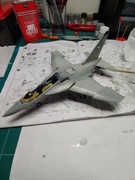 Podkładem pod washe powinien być Gloss (błyszczący), nie Semi Gloss (półmat). Na półmacie wash wchodzi pomiędzy ziarna i dlatego ciężko go wymyć, a na połysku spływa zostając w zagłębieniach. Ewentualnie "budżetowo" zamiast Glossa może być Sidolux, który jest dość rzadki i daje się kłaść pędzlem. Jako washe stosuje dedykowane gotowce Ammo MiG. Zmywać zaczynam wcześniej tzw. "white spirit-em". Do ścierania (zmywania) nawilżam tym płatki, patyczki kosmetyczne lub odcięte kawałki ręcznika paierowago. Czasami do zaznaczenia bardziej "zużytych" linii (często otwierane pokrywy luków inspekcyjnych, panele osłon silników, pokrywy komór uzbrojenia itp.) robię własnego washa z mocno rozcieńczonego Humbrola 27001.