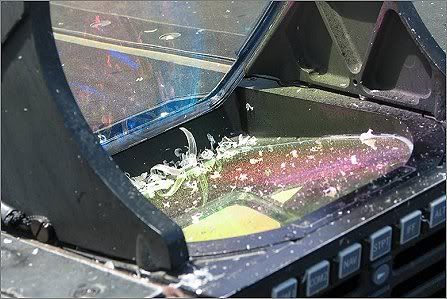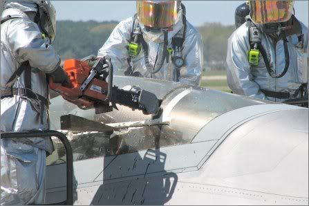 Raptor canopy stuck in down and locked position sawn open by fire crew after 5h