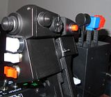 To co w przepustnicach bardzo mi się spodobało i czego chyba żaden z modeli konkurencji nie ma, to mechaniczne blokady na pozycji IDLE-OFF i dla dopalaczy. Żeby przesunąć dźwignie przepustnic dalej, trzeba je pociągnąć do góry i dopiero wtedy przemieścić. Nie żeby blokady te zwiększały jakoś specjalnie walory użytkowe, bo pierwsza przydaje się tylko do wyłączania silników, a druga ułatwia ustawienie maksymalnego "suchego" ciągu, ale utrudnia włączenie dopalaczy, więc w sytuacji podbramkowej wcale nie jest zaletą. Ale zabawa jest :D