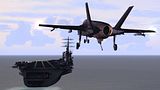 Dalej kierujemy się na oddalony o jakieś 50 mil lotniskowiec. Podejście Qby, pierwszy raz i bingo. U mnie tym razem nieco gorzej, chyba za 4tym razem zaczepiłem w końcu linę. TP z działającym ILS ułatwia to zadanie. Tutaj się też dozbroiliśmy w AGM-154, AIM-9X i podwieszane działko.