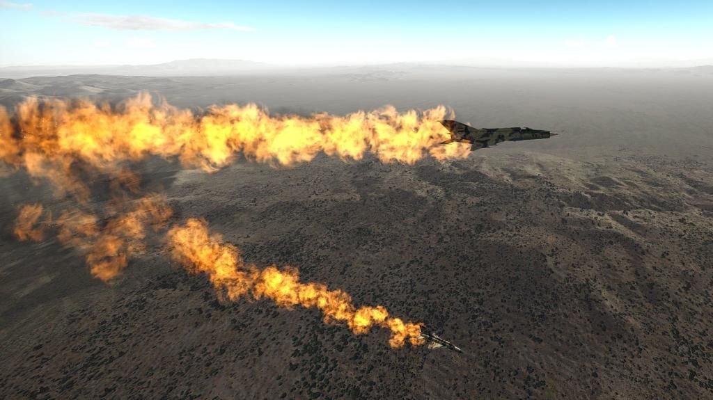 Jeden MiG dostał Sidewinderem w dziuple. Drugi, który leciał obok uległ zniszczeniu do wybuchu/odłamków.