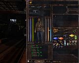 Postać opisana statystykami. Mamy teraz paski głodu i odwodnienia. W plecaku obowiązkowy zestaw turysty: gitara+śpiwór. Jeszcze z nowości, bateria potrzebna do latarki, na pasek na samej górze musimy przeciągnąć porządany rodzaj ammo, inaczej nie postrzelamy.
