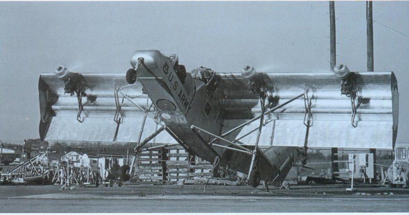Chwilunia googlania obrazu i mamy odpowiedź: Fairchild VZ-5, eksperymentalny samolot badający możliwość wykonania pionowego startu/lądowania z wykorzystaniem skrajnie rozbudowanej mechanizacji płata. Samolot wykonał kilka próbnych "wzlotów" na uwięzi, po czym projekt anulowano.