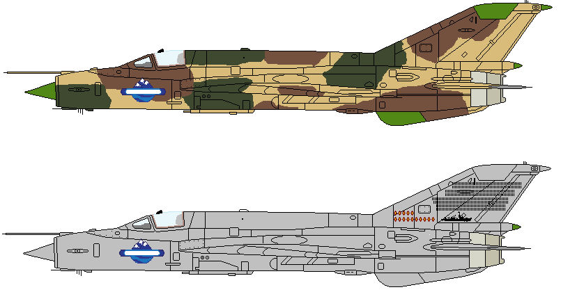 1. MiG-21 nigdy nie został przystosowany do tankowania w powietrzu. Twórcza DCS:MiG-21   Laszlo 'beczl' Becz twierdzi że system paliwowy na Migu to uniemożliwia. Jednocześnie Peruwiańskie Su-22 i Irackie Migi-27 miały instalowane sondy do tankowania.