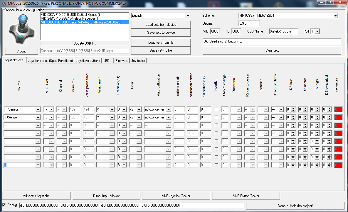Odp: MMJoy-2 Konfiguracja i wybranie opcji - Arduino LEONARDO Atmega32U4