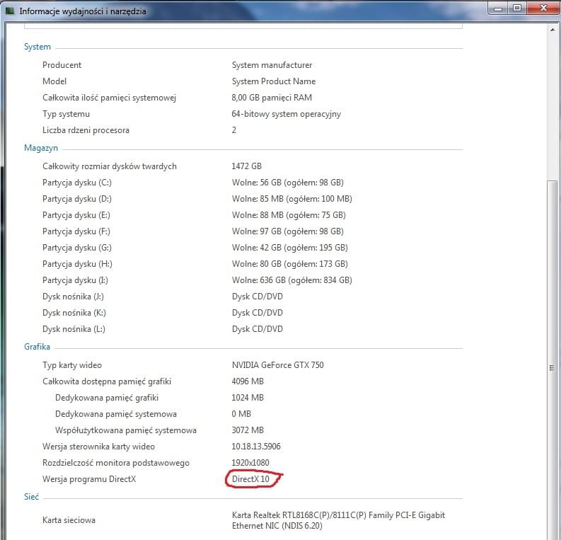 Ale Windows 7 z serwis pakiem 1 pokazuje  DX 10 o co tu chodzi_?