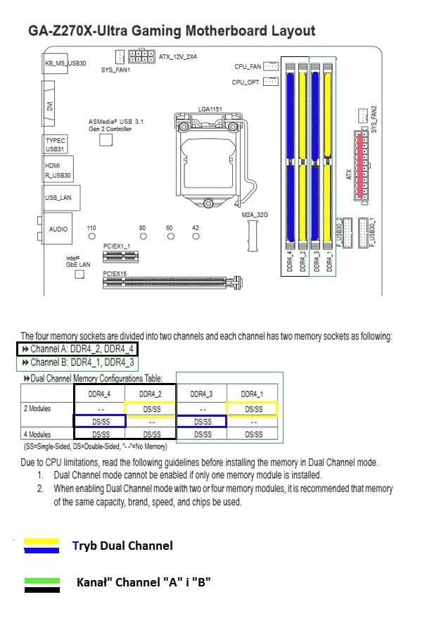 Kto wie może  coś z płytą główną i bankami,  a moze wystarczy cos włączyć/wyłaczyć/ przełączyć w Bios  np. Kanały A i B ,  manul.pdf  http://download.gigabyte.ru/manual/mb_manual_ga-z270x-ultra-gaming_e.pdf
