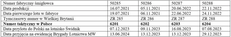M.in. szczegóły dostaw poszczególnych AW101 do Polski: