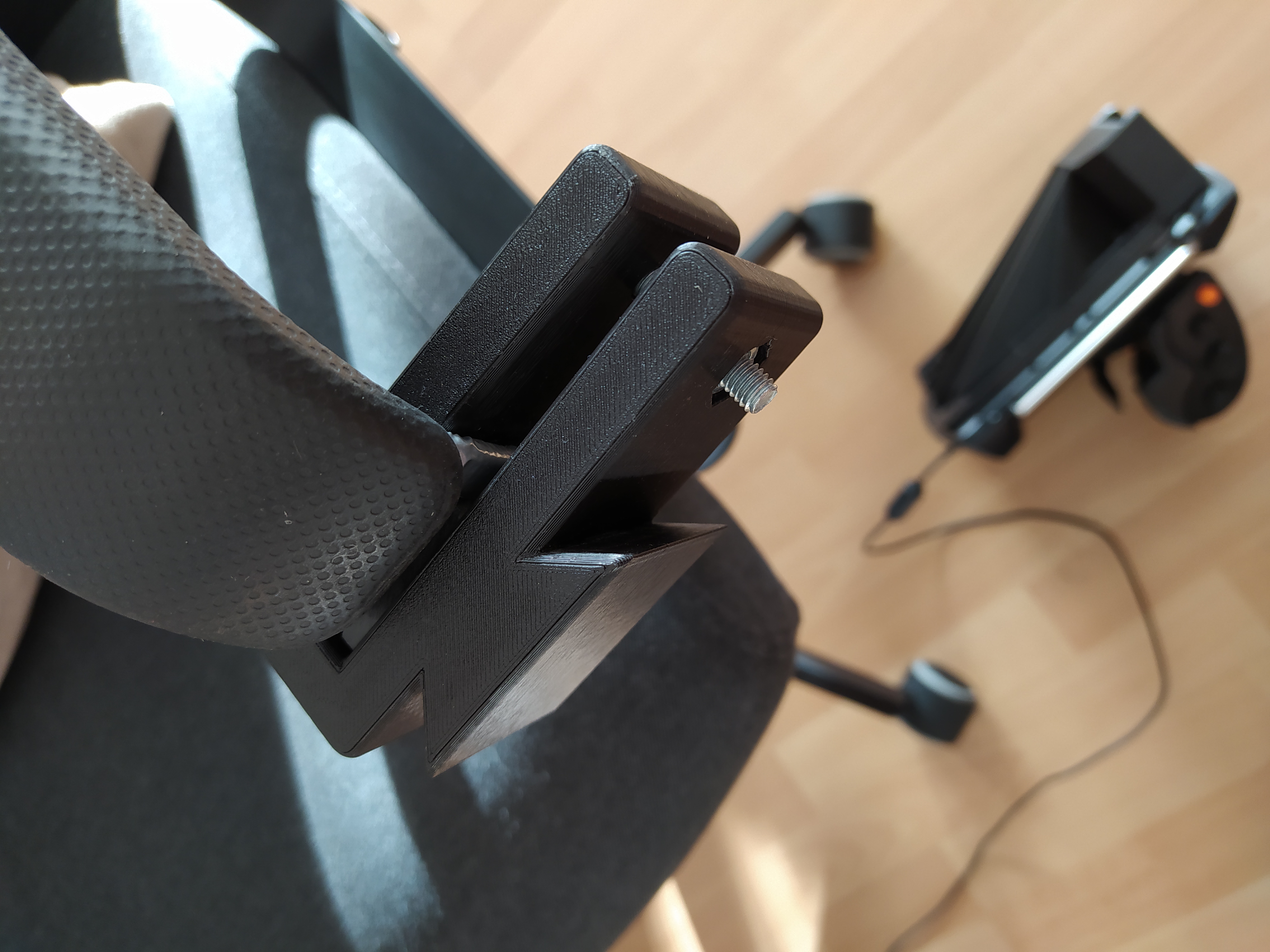 Całość niestety wymaga określonego typu fotela (podłokietniki). U mnie akurat zamontowane to jest na fotelu z IKEA.