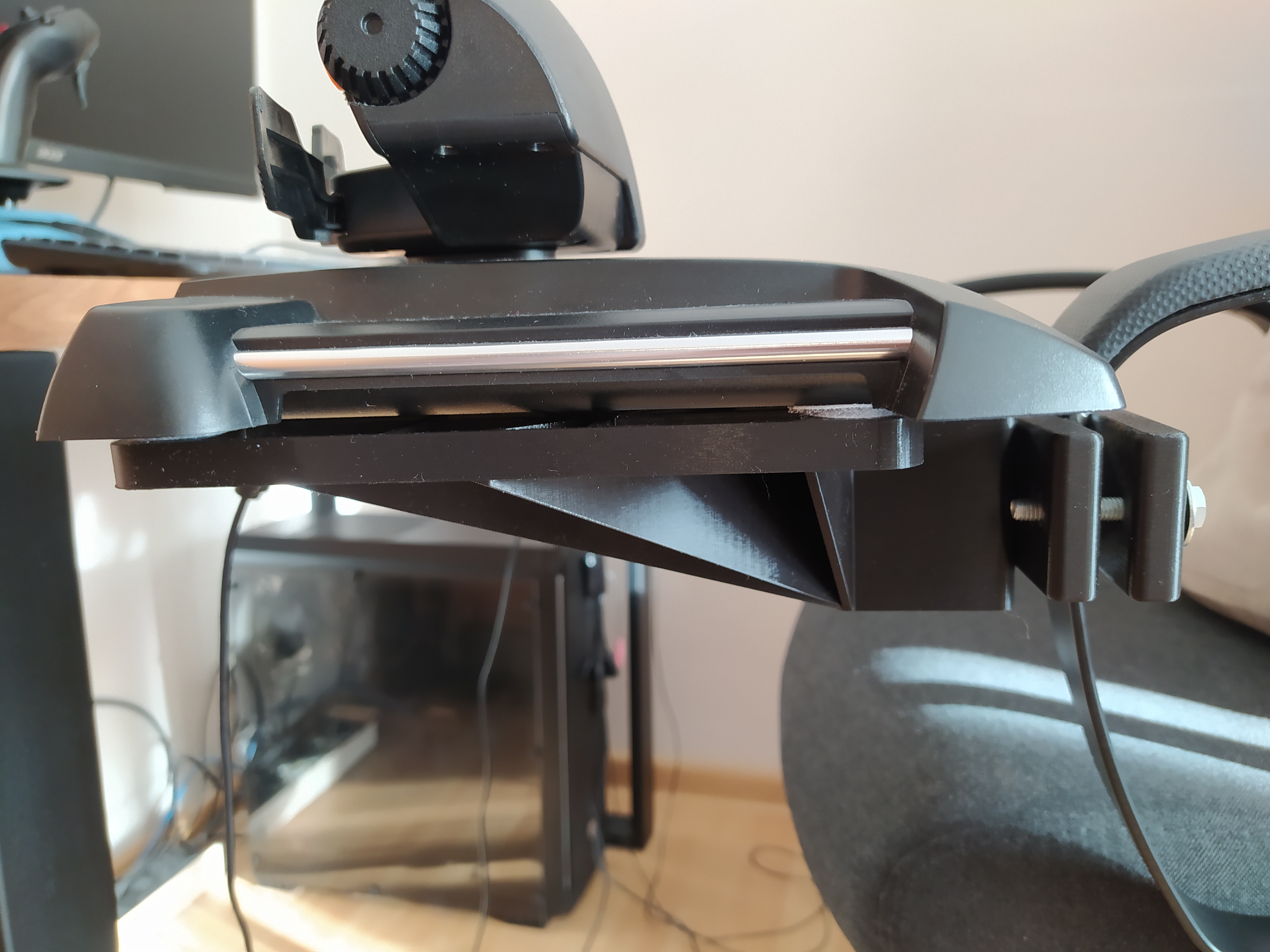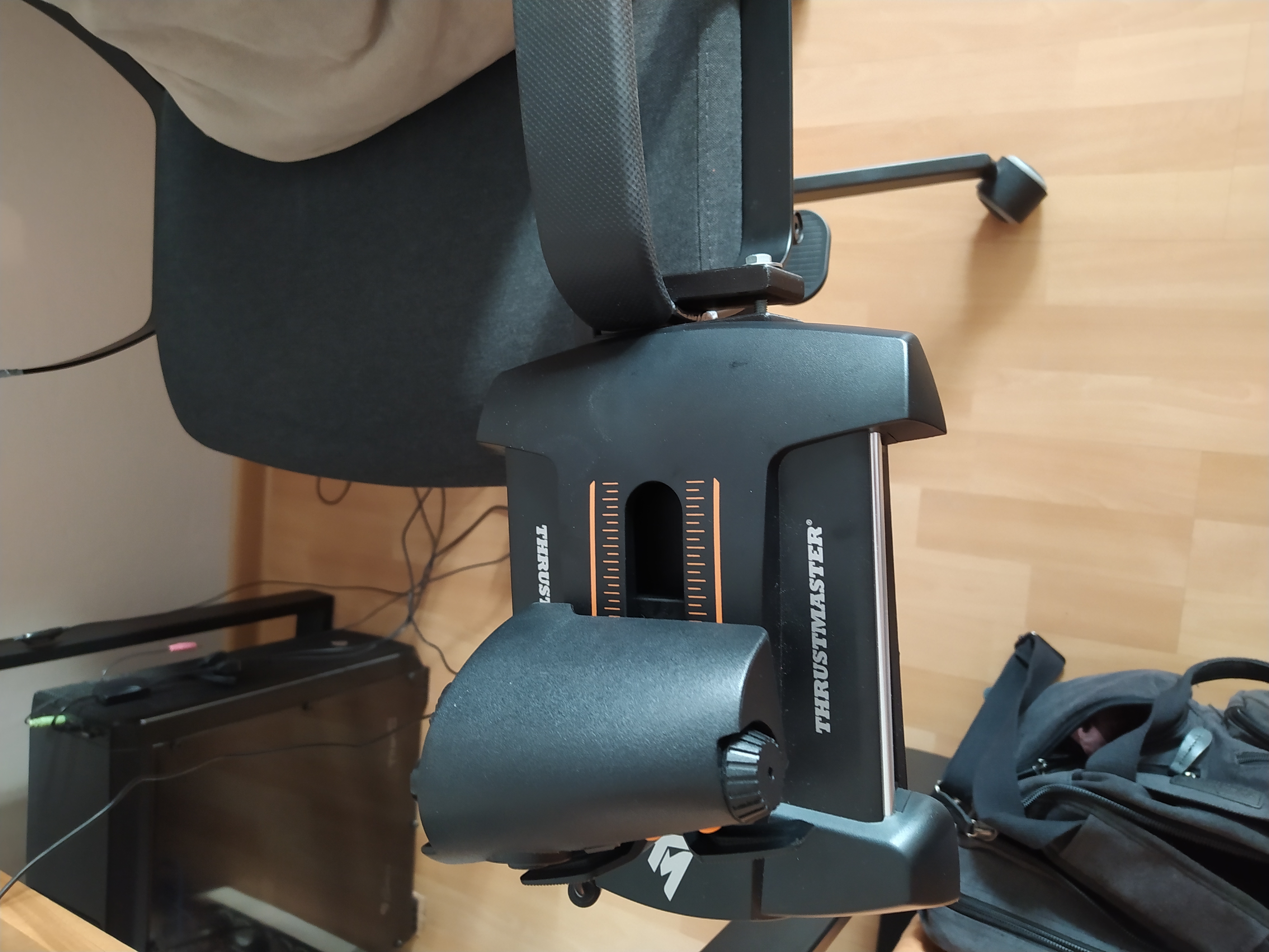 Do tej pory miałem przepustnicę i joystick montowany do Wheel Stand Pro (dodałem sobie mocowania) ale wkurzało mnie to ustrojstwo stojące przede mną. Ograniczało ruchy. Nóg nie dało się swobodnie pod biurko wsunąć.