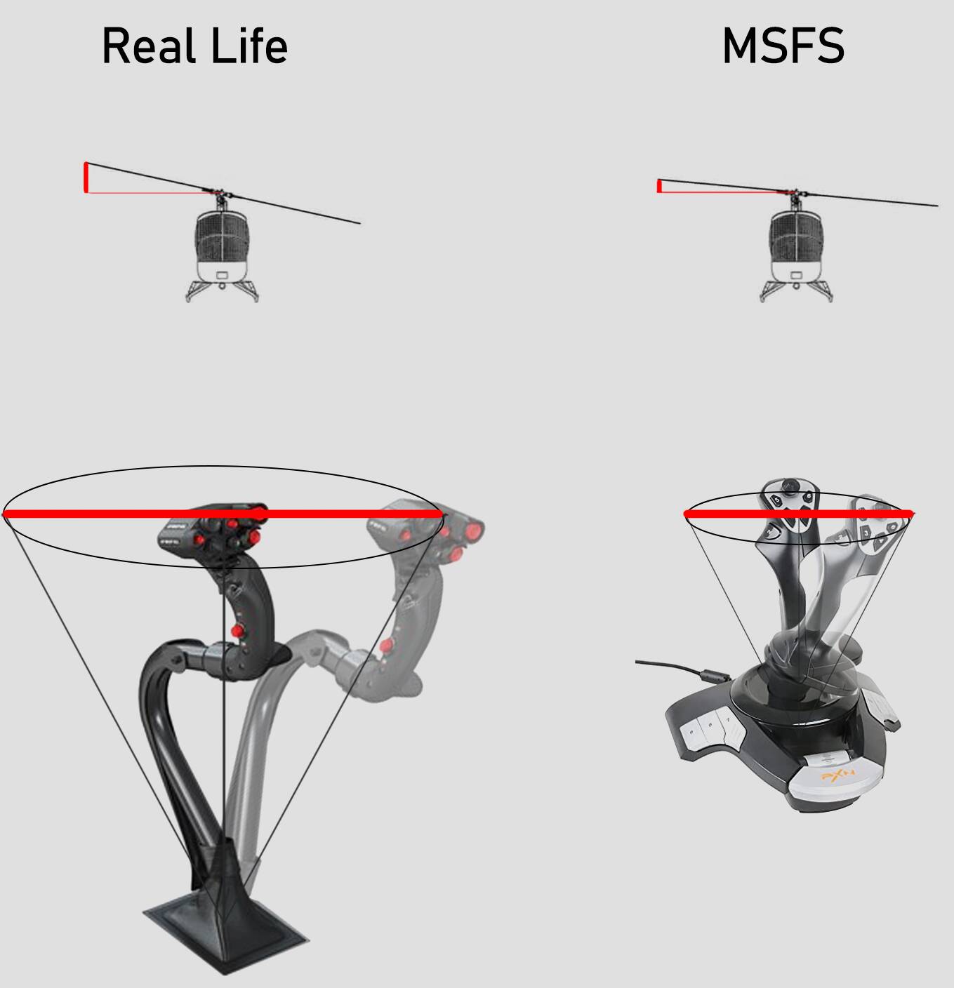 I w takim wpadku odpowiedź brzmi: W MSFS 1cm ruchu drążka w prawdziwym śmigłowcu= 1cm ruchu joysicka, ale ponieważ ruch krótkiego joysticka jest krótszy, to wirnik jest wychylany pod mniejszym kątem (upraszczam, ale na pewno rozumiesz). To jest ukłon w stronę "casual players". Parametr który ja podałem, najprawdopodbniej zwiększa kąt wychyłu wirnika, więc przy krótkim joysticku helikopter jest bardzo czuły na małe ruchy- jak DCS.