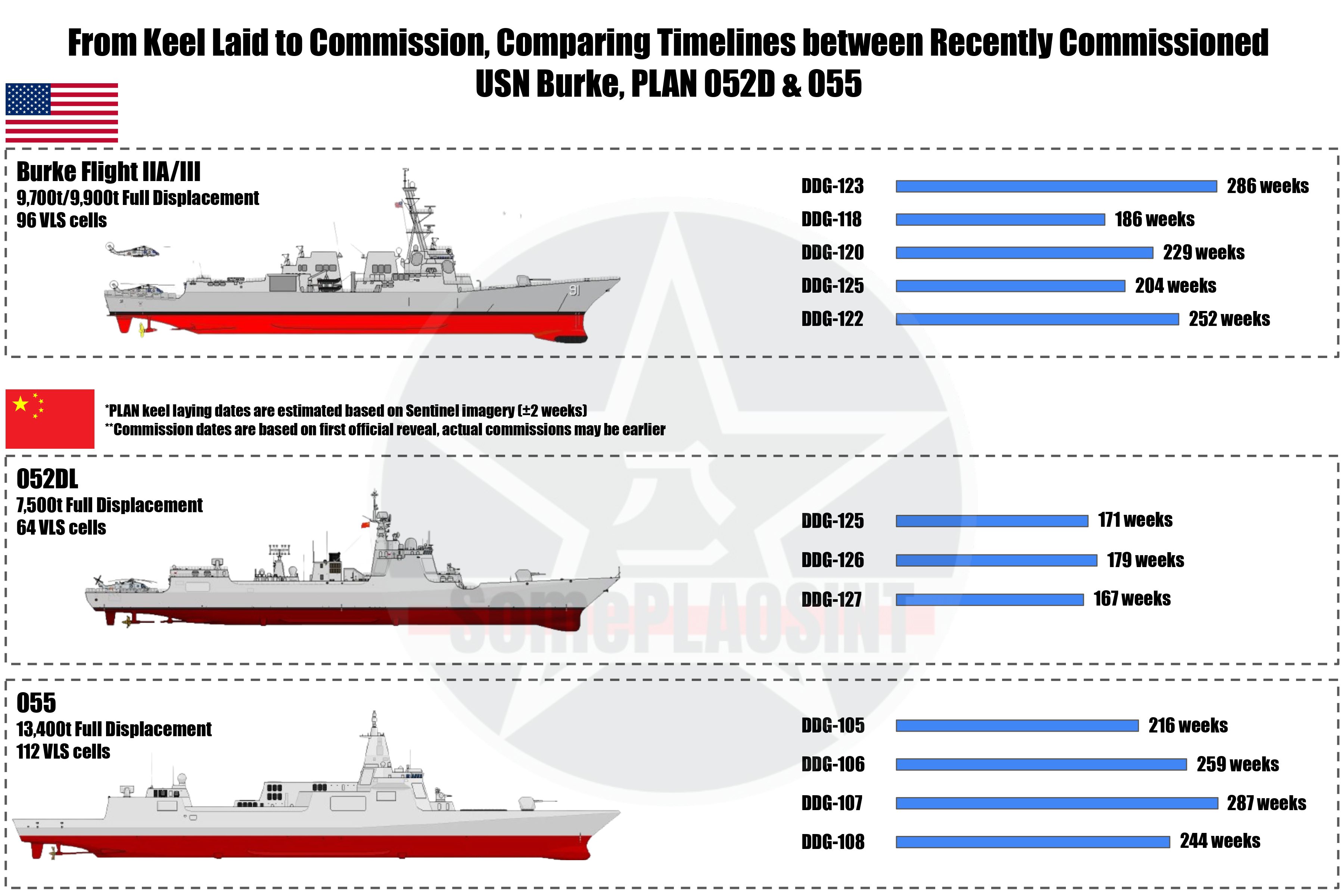 Ciekawa grafika prezentująca tempo budowy niszczycieli w USA i ChRL: