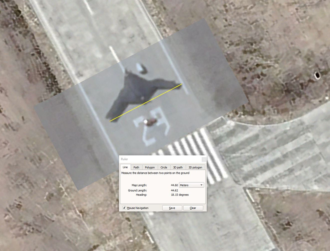 Długość tego myśliwskiego drona odpowiada długości F-16 (czyli 15 metrów). Ponadto oszacowano, że ma on masę własną na poziomie 5-6 ton. Z kolei ten drugi, szerszy z EOTS pod dziobem, ma ważyć 6-7 ton. Raczej nie więcej, bo by przeważył lawetę, na której był eksponowany i szorowałaby ona "tyłkiem" po asfalcie :P.