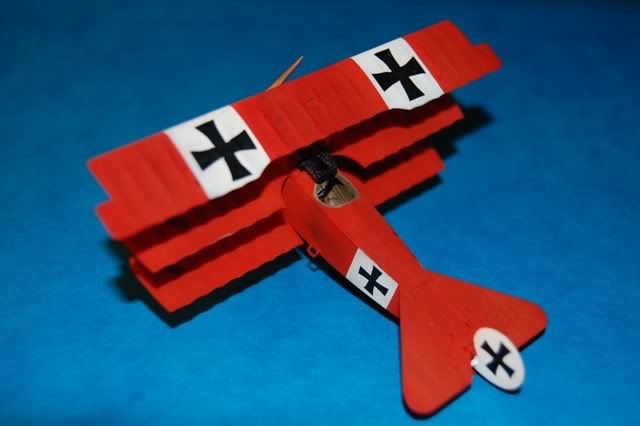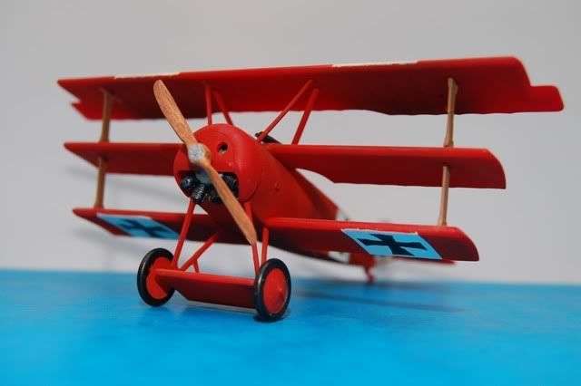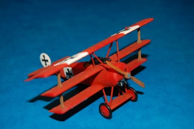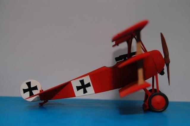 Kolejny (drugi z kolei) model mojej narzeczonej. Dreidecker Revella 1/72, wyboru tego konkretnego modelu chyba nie muszę komentować: "zobacz jaki czerwoniutki..." :001: W trakcie budowy nie obyło się bez wpadek: zgubione śmigło, które sam dorobiłem z kawałka patyczka, zaginione kalkomanie oraz mały wypadek po którym model prawie skończony składał się z wielu kawałków nie zawsze równych :003: Efekt końcowy jest całkiem niezły, zobacznie sami.