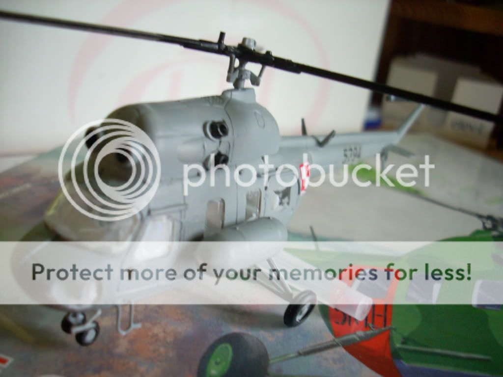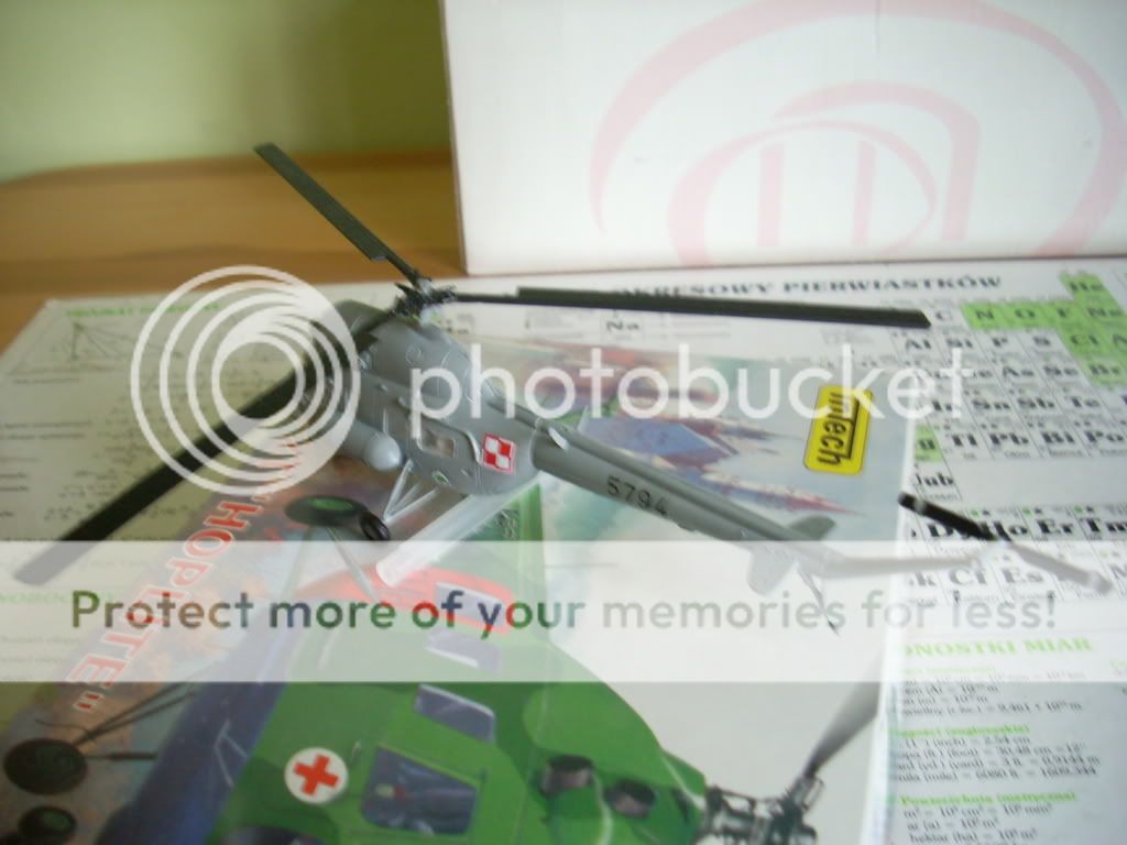 PS: Jak oni produkują te modele, że prawie każdy helikopter ma cięższy ogon od kabiny? Jak widać na zdjęciu podparłem go zatyczką bo inaczej leci do tyłu. Do zbiorników paliwa napchałem papieru (zły pomysł) ale to nic nie dało. Pamiętam, że poprzednio przy sklejaniu UH-1 było to samo.