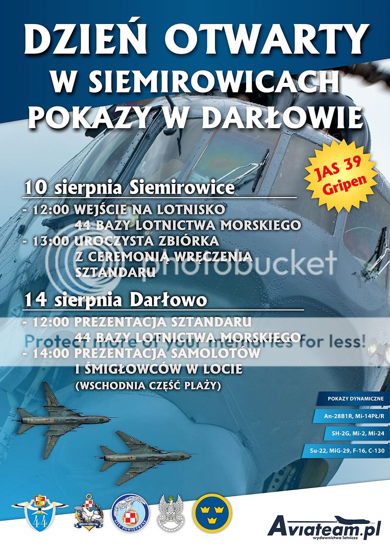 Będę jutro, ale zastanawiam się czy organizatorzy celowo na ulotkach mylą "pokaz dynamiczny" z "przelotem" (Gripen, Su-22, MiG-29 i F-16), czy faktycznie będą małe pokazy. ;)