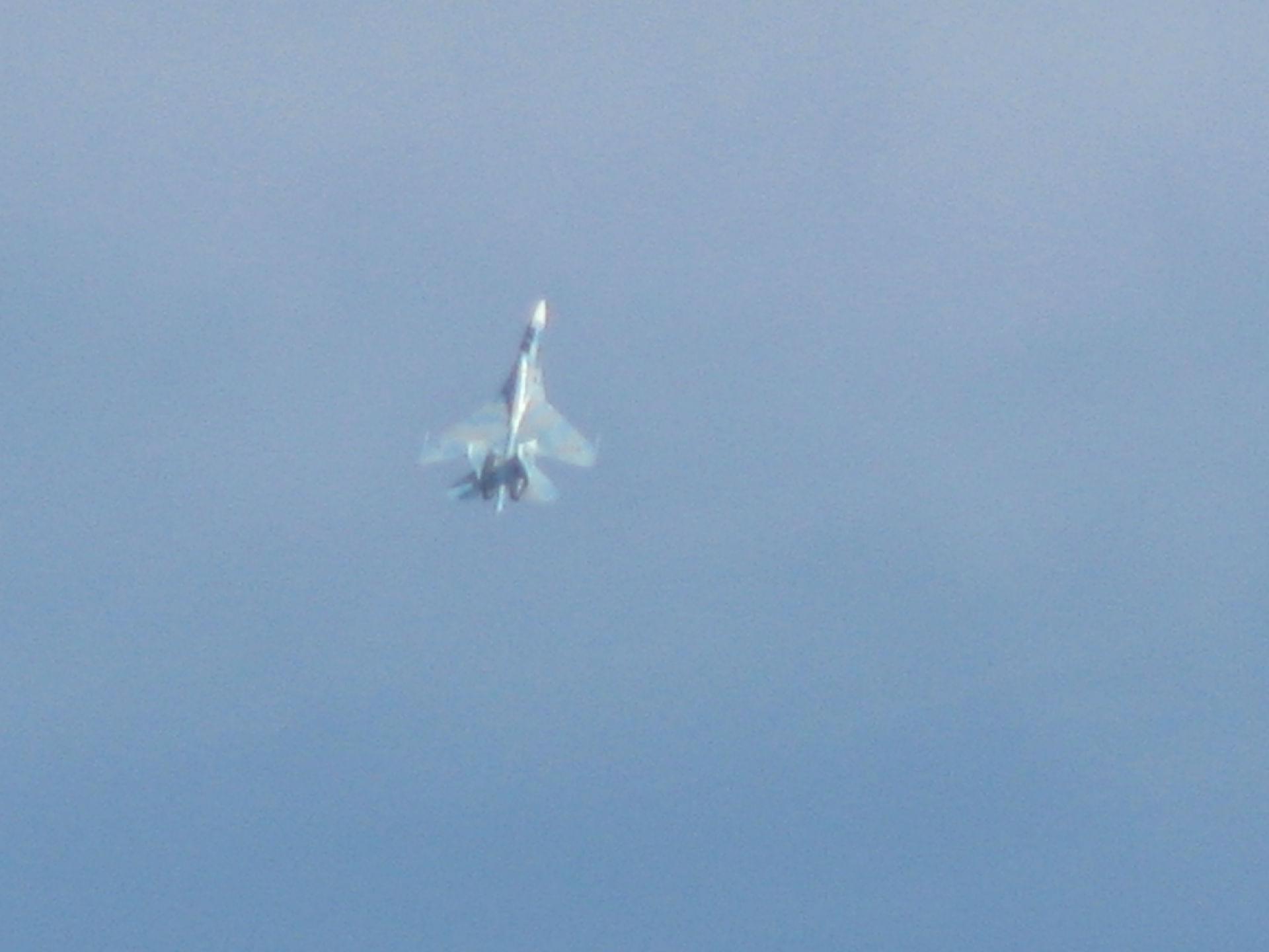 A ja mam Su-27 z radomia - dokładnie ten który się rozbił w niedzielę. W sobotę padał deszcz, a zdjęcia są z treningu piątkowego. Robione z mojego balkonu ;)