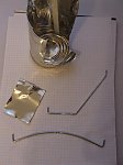 Przylutowanie podstaw pod markery. Elementy wycięte z blachy "made in puszka" mają wymiary: 6 x 12 mm (wymiary markerów z taśmy to 6 x 14 mm). Opiłowane i ukształtowane po łuku na pisaku-markerze bądź innym walcu o podobnej średnicy.