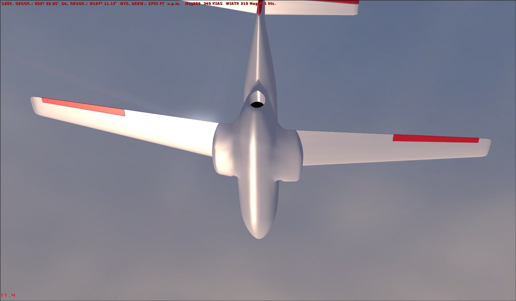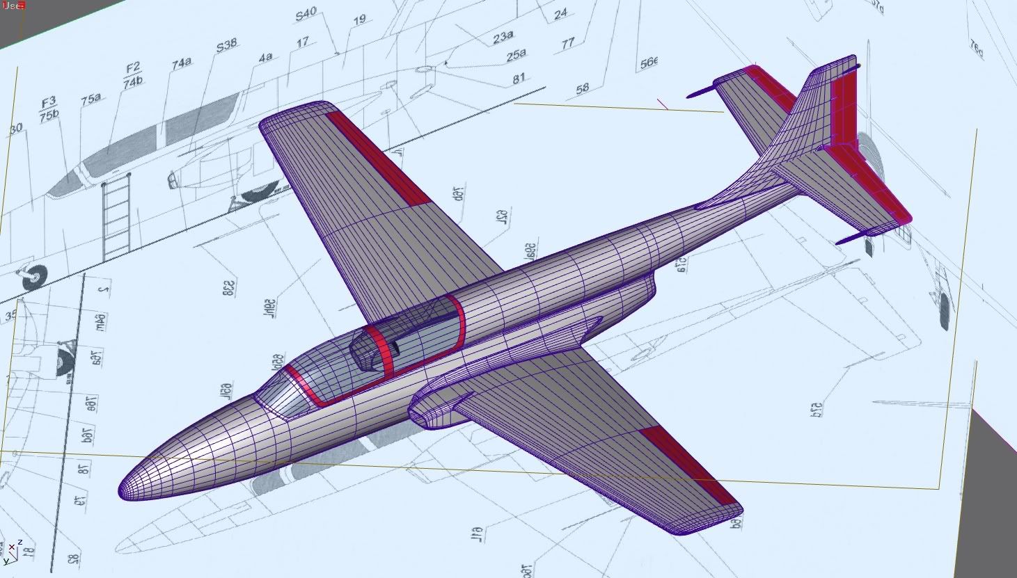 Na chwilę obecną zrobiłem główną bryłę samolotu i wstawiłem do FSX'a z wykorzystaniem plików innego samolotu (Soko G-2 Galeb który kiedyś pokazał tu Razorblade, chyba najbardziej zbliżony pod względem osiągów). Lata toto nawet nawet, o czym świadczą poniższe screeny. Planuję najpierw skończyć cały exterior (wraz z teksturami i animacjami), traktując go jako poligon szkolny przed przejściem do naprawdę ważnych rzeczy, czyli kokpitu i awioniki. Mam nadzieję, że uda mi się do tego czasu zgromadzić potrzebną dokumentację.