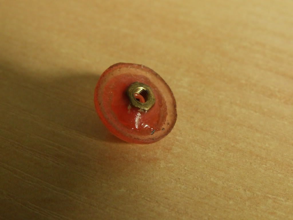 Wiadomo, że przy takiej technologii skuteczność wykonywania jest na poziomie 50%, połowa grzybków wyszła nie tak jak chciałem, jednak 3 wybrałem w stanie zadowalającym. Następnie na płaskiej powierzchni grzybka na tej samej żywicy wtopiłem malutką nakrętkę M3.