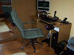 Więc tak: Drejku dał mi namiary na materiał którego on użył, jest to Codura oliwkowa. Fotelik musiałem zrobić bo miałem z eko skóry, która zaczęła się łuszczyć jakaś masakra. Ale większą masakrą była zawartość siedziska, do głowy by mi nie przyszło że z takich śmieci można zrobić fotel :o. Dół i chromy były "zdrowe" stąd pomysł przeróbki. Szył mi to znajomy tapicer któremu dostarczyłem plany. Raczej skąpe ogólny zarys, jakiś szkic, wymiary, wydrukowane zdjęcie, no i konsultacje ze mną ;). On sam nie był przekonany co do tego materiału jest dosyć sztywny, podklejony jakimś tworzywem. Musiał trochę inaczej wyprofilować oparcie bo stare zwężało się na górze. Ale z efektu końcowego jestem zadowolony :). No i ten wieszaczek na słuchawki, wedle mojego pomysłu, tak żeby były w zasięgu ręki ;). Jeśli chodzi o koszty to zamknąłem się w 300zł. Teraz myślę o przerobieniu reszty mebli ;D.